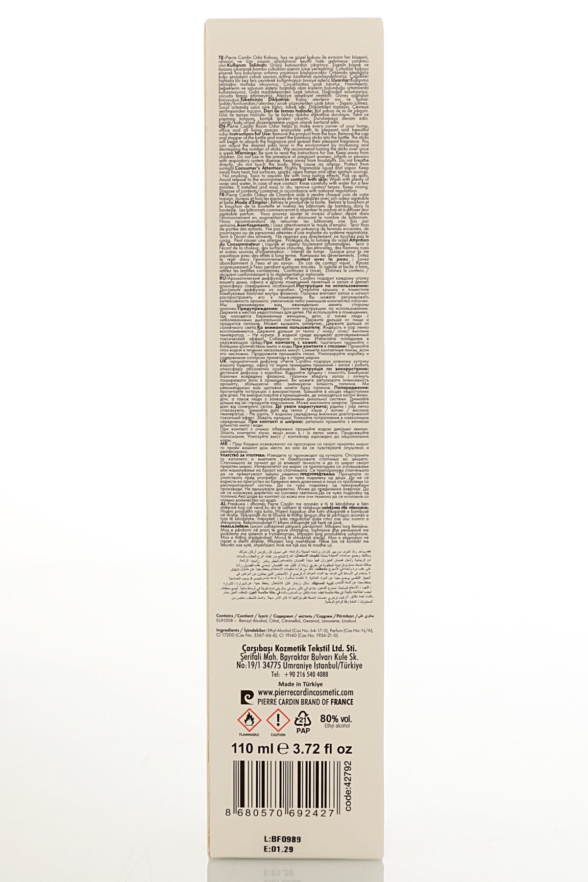 De Pierre Cardin Reed Diffuser Blackberry vult je interieur met een warme, fruitige geur van rijpe bramen. Deze stijlvolle geurverspreider zorgt voor een langdurige en gelijkmatige geurafgifte en creëert een aangename, uitnodigende sfeer in elke ruimte.
